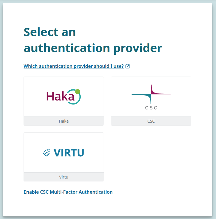 Login to MyCSC with your CSC user account or Haka/Virtu account.