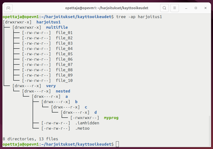 Vihje suorittamiseen: ./tarkista_kayttooikeudet.sh harjoitus1