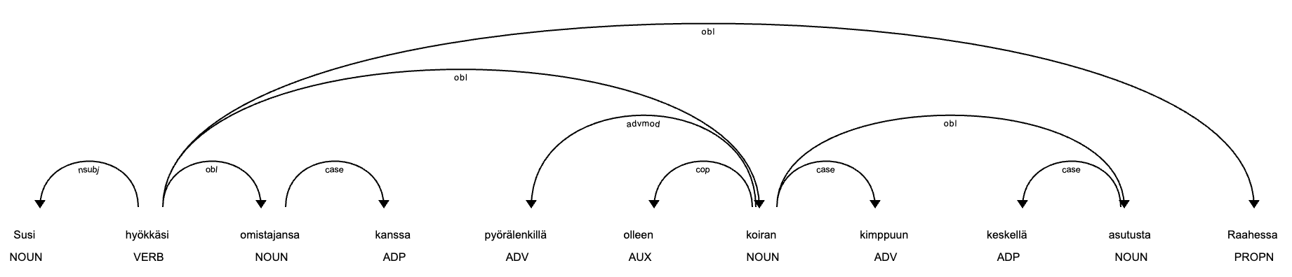 doc = nlp("Susi hyökkäsi omistajansa kanssa pyörälenkillä "